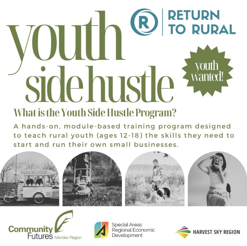 Special Areas, Alberta — Community Futures Meridian Region and Special Areas Regional Economic Development are pleased to announce the launch of the Youth Side Hustle Program, a hands-on entrepreneurship initiative designed to help rural youth develop real-world business skills and explore self-employment as a future career path.